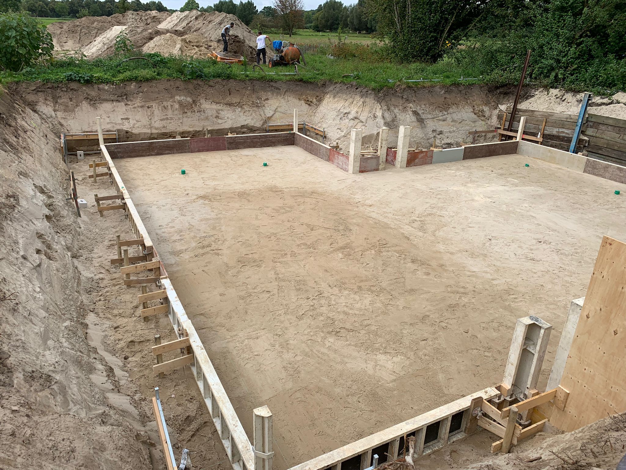 - Herstellung der Bodenplatte (Sohle) als stabile Grundlage